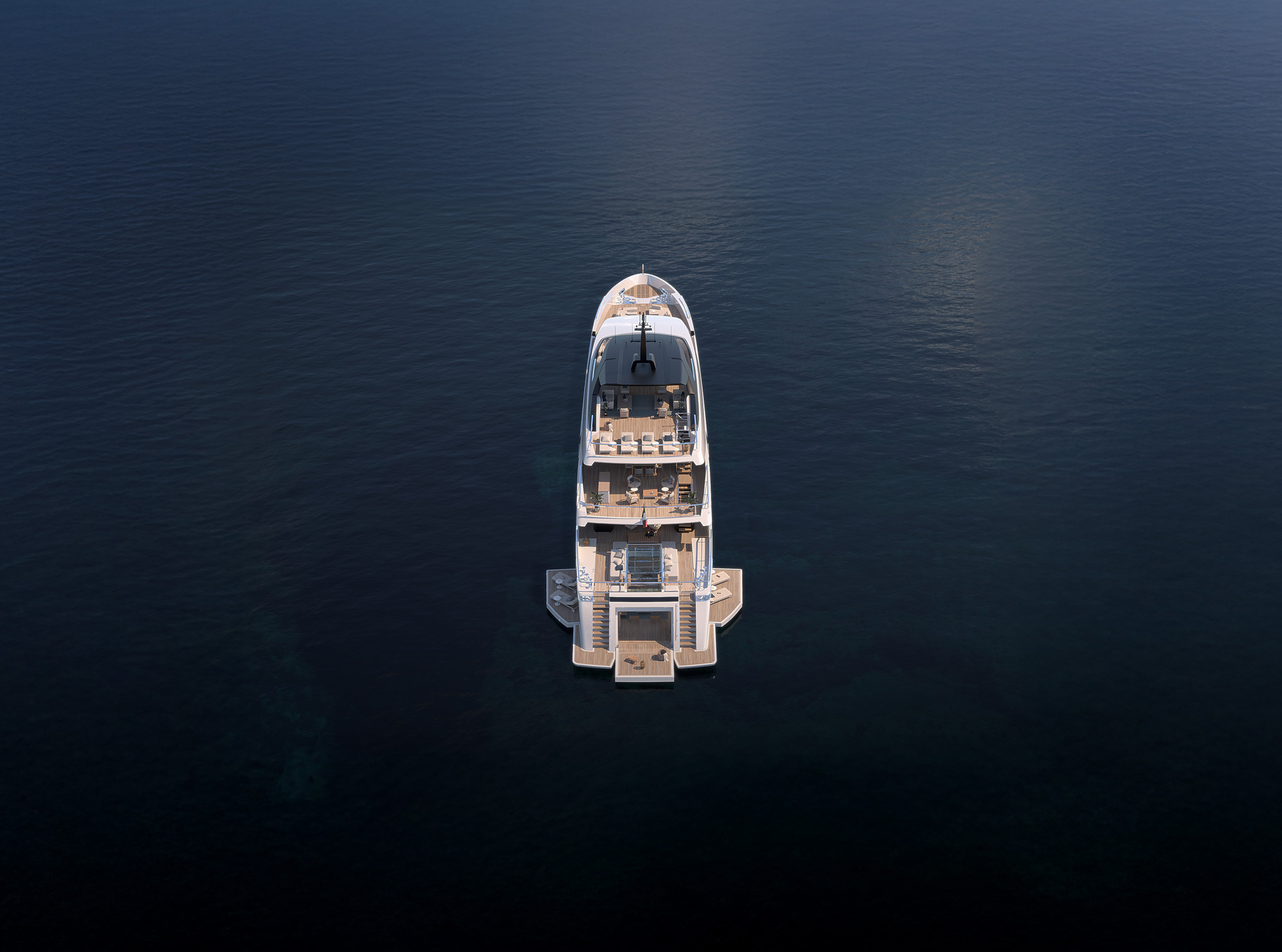 The exterior lines articulate generous proportions, expansive glazing and a harmonious silhouette, for a powerful yet elegant profile. Large deck areas and fluid transitions reflect contemporary minimalism.