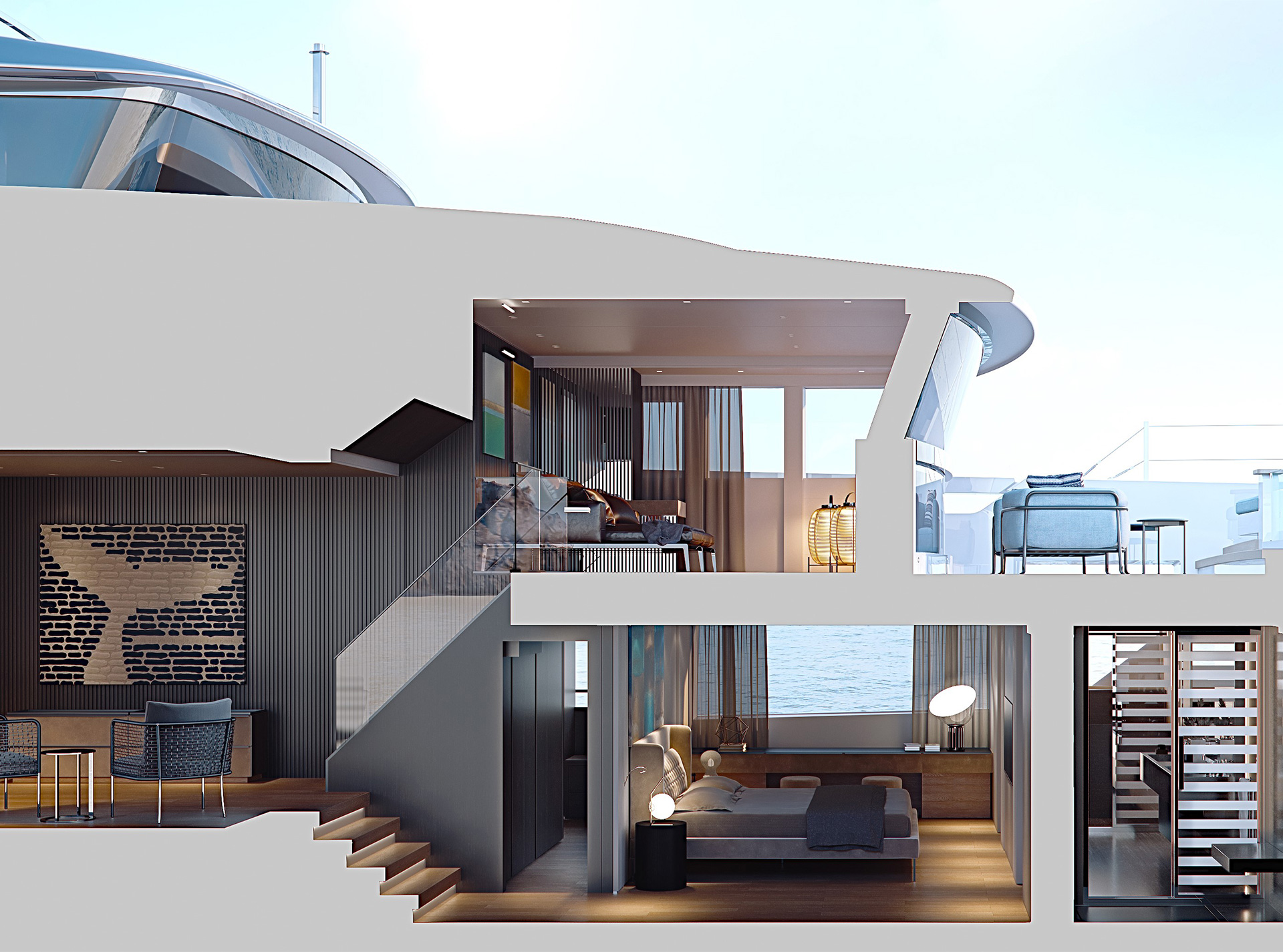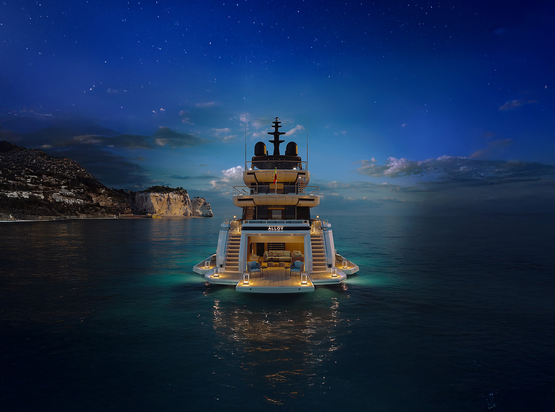 Alloy blends sculptural strength with refined space, redefining superyacht presence.