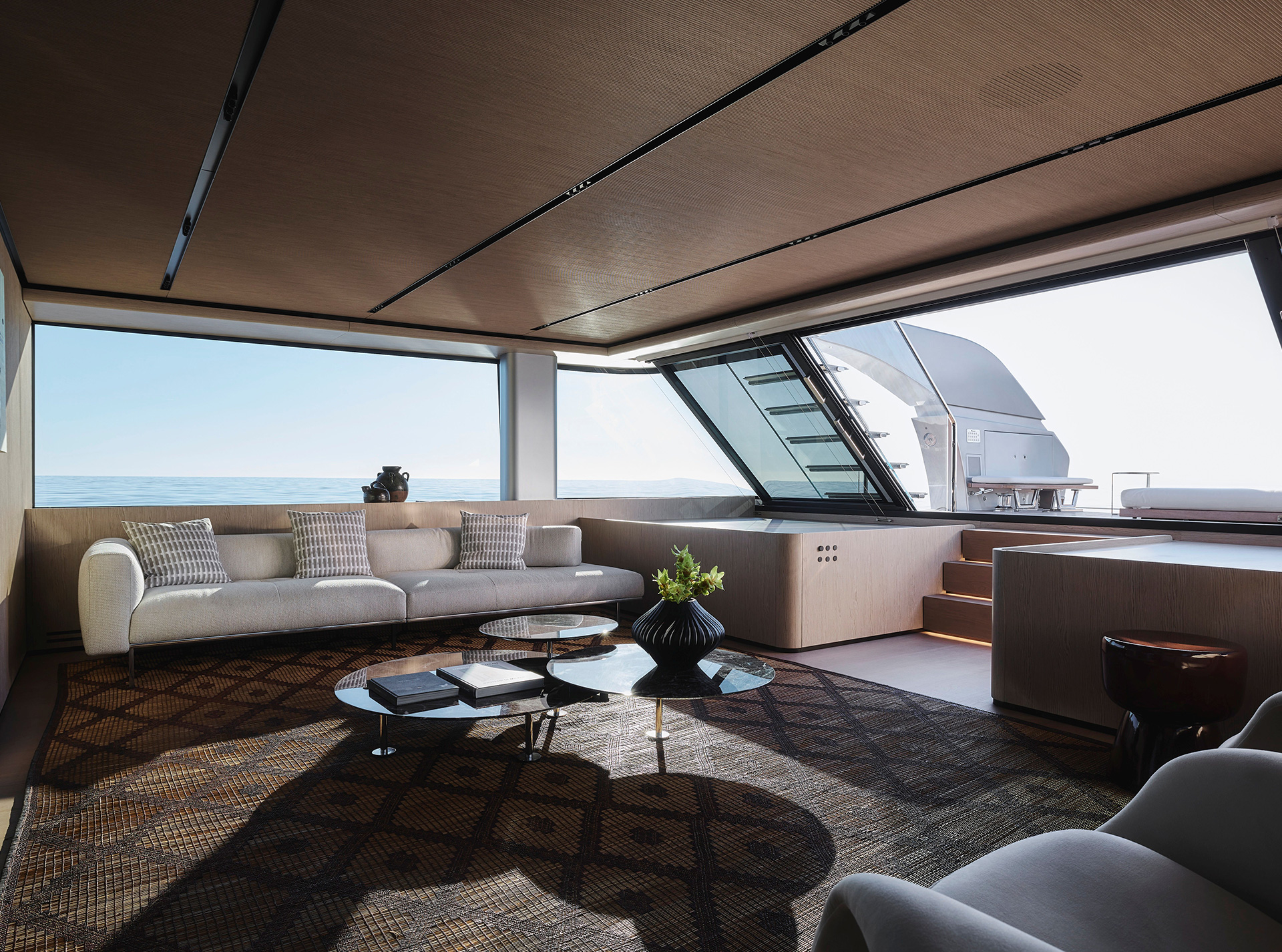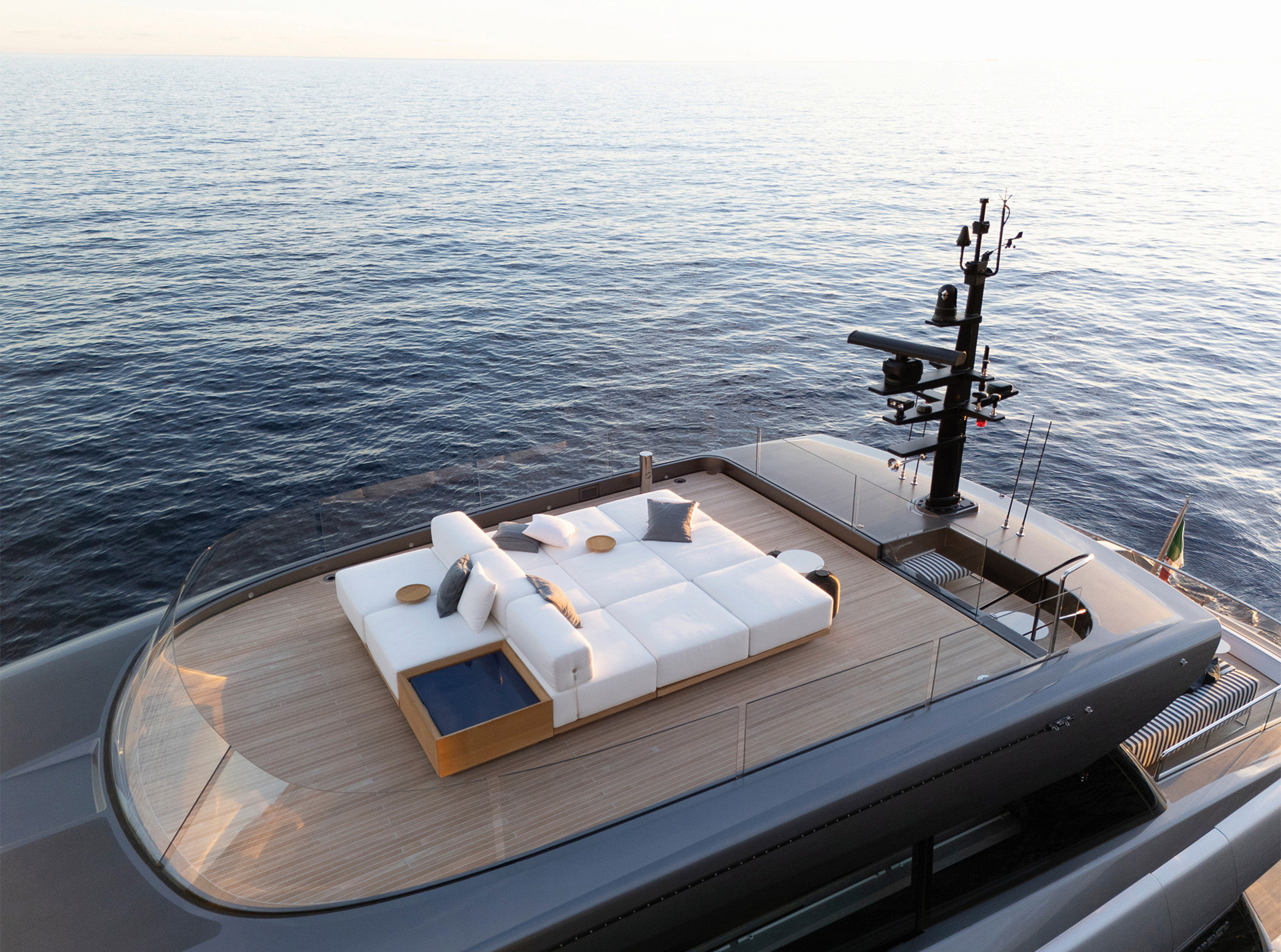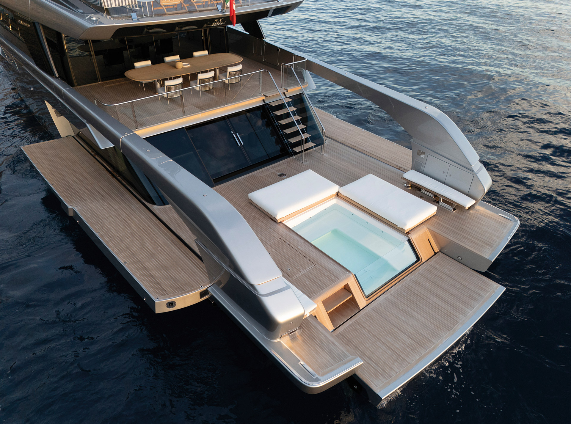 A synthesis between classic motoryacht with flying bridge and the explorer range. The largest SX offers expansive onboard spaces and a 70 sqm beach area with retractable pool and 360° panoramic views from the Upper Deck.