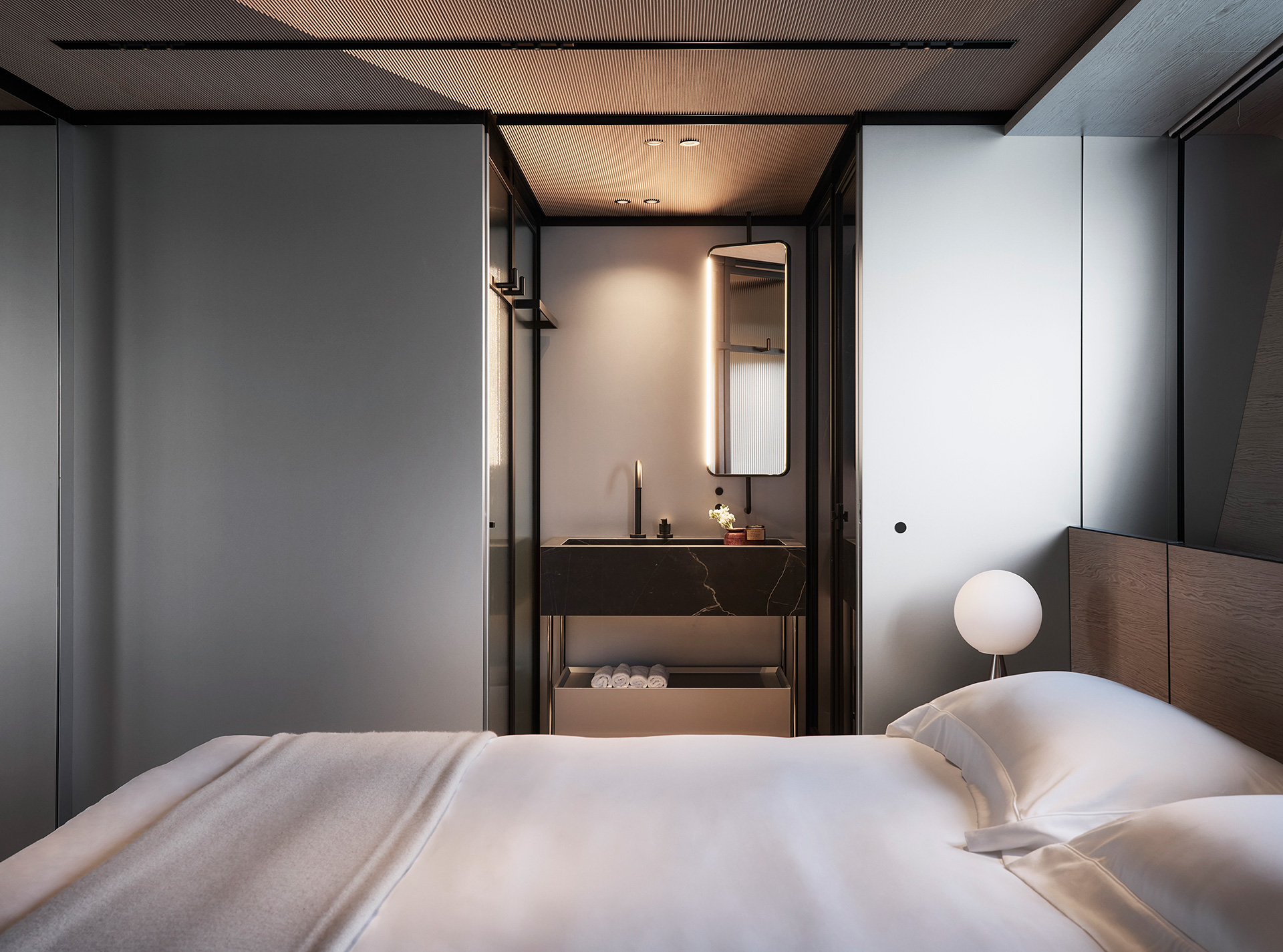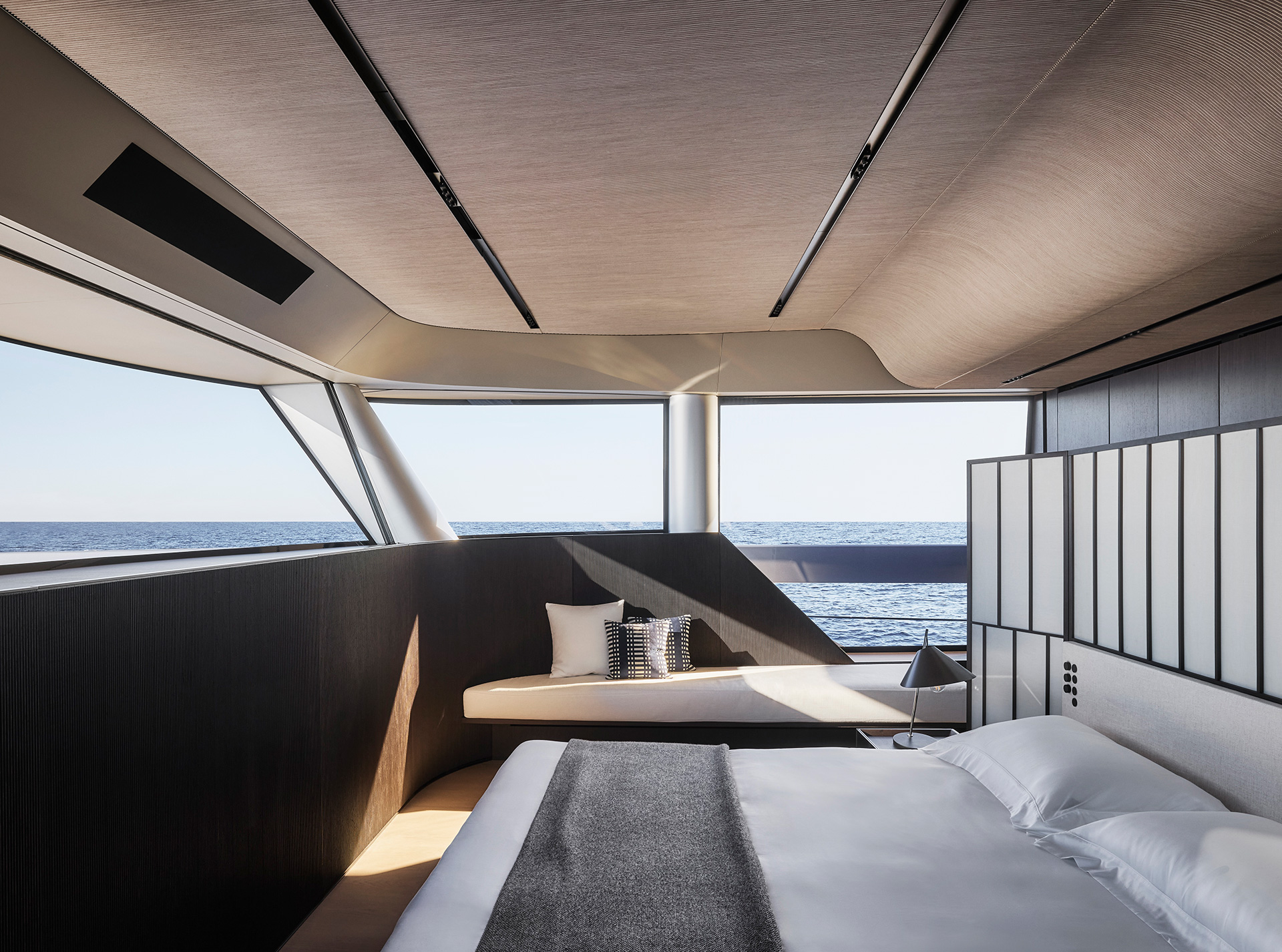 Interior spaces are defined by calm brightness and essential elegance, where light, refined materials and fluid layouts create a serene atmosphere, dissolving boundaries between inside and sea for effortless, contemporary living.