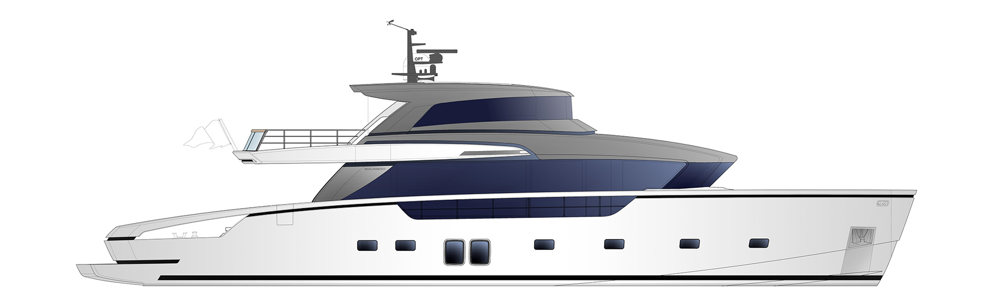 The original crossover, marking a revolutionary step in yachting.Innovative layout and cutting-edge design redefining onboard living.